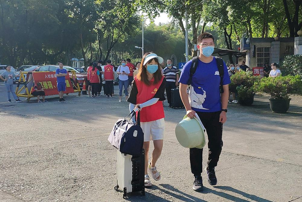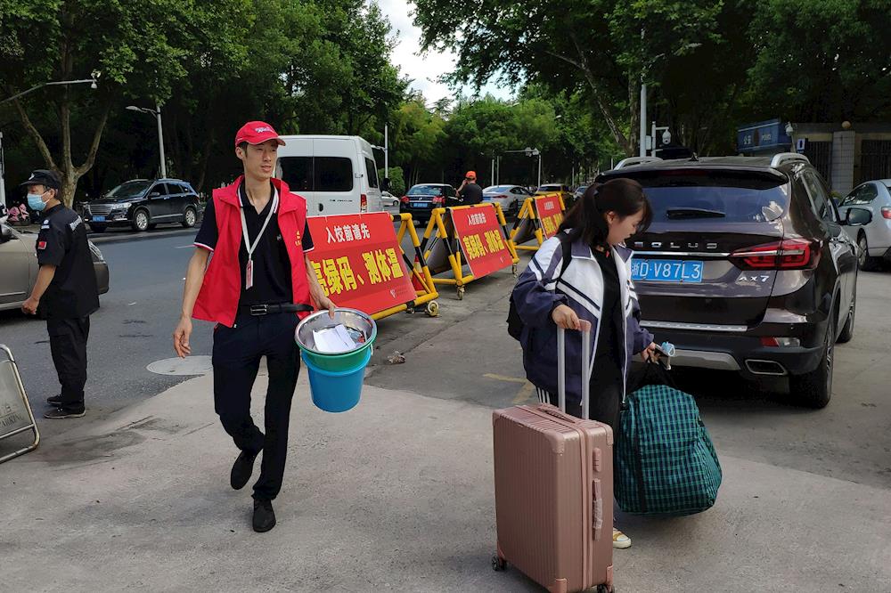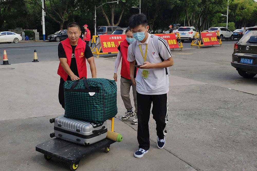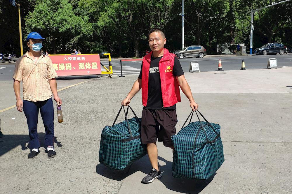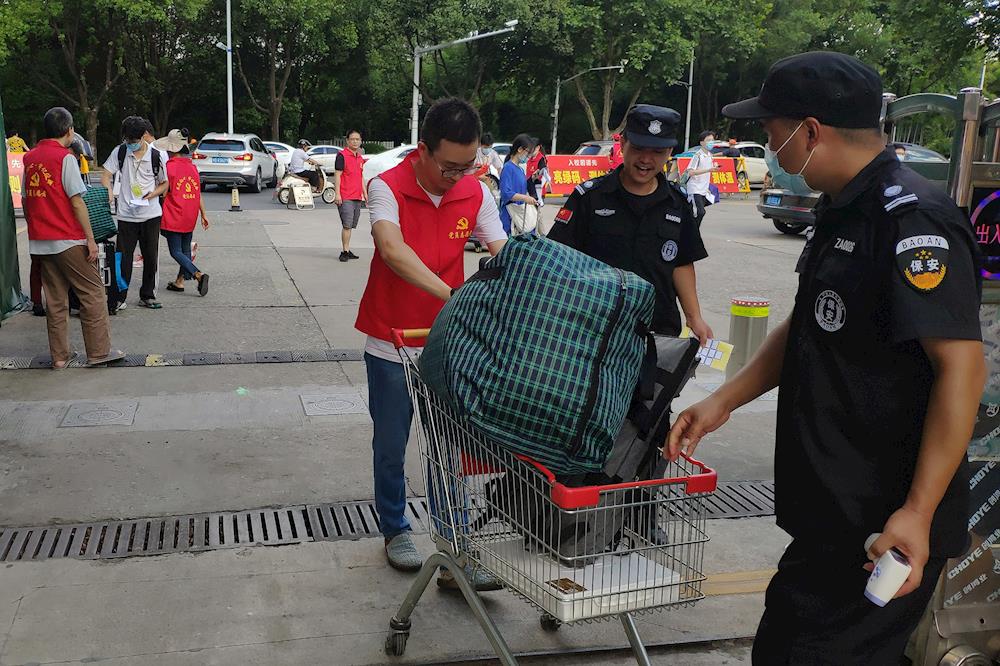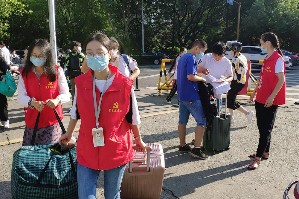 党员志愿者帮助学生搬运行李