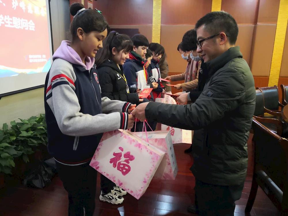 随后李会长一行向新疆班少数民族学生代表进行了慰问金和慰问品捐赠,为新疆班学生送上新春的祝福和慰问,学生们纷纷表示感谢和感恩,来自20级财会专业的维吾尔族学生苏比努尔·奥斯曼动情地说:要感谢党和政府,让他们在内地读书能感受到绍兴人民的关爱,自己一定会好好学习。